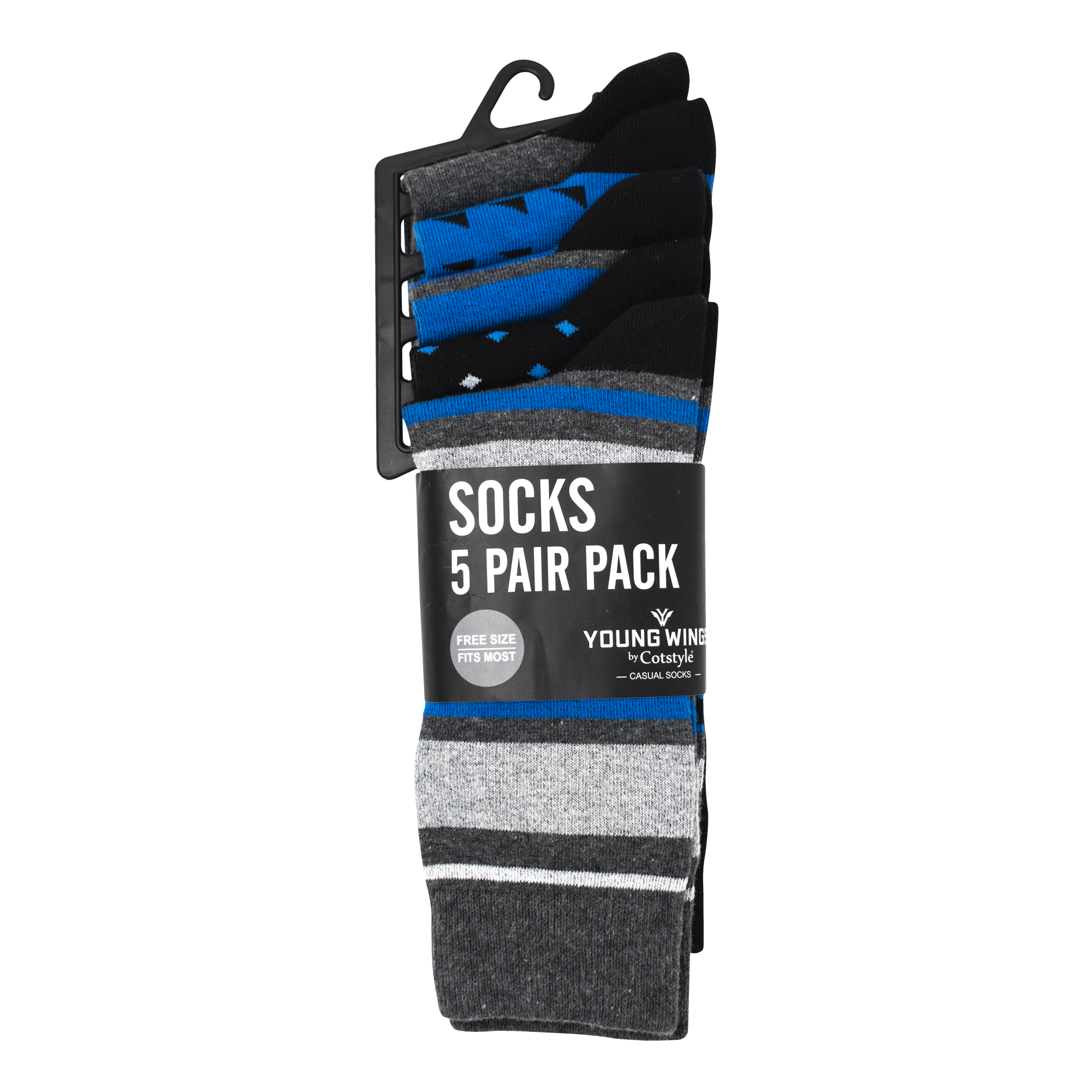 Young Wings value pack has 5 Crew length socks made from cotton. These are very soft and comfortable on skin. Suitable for all occasions.