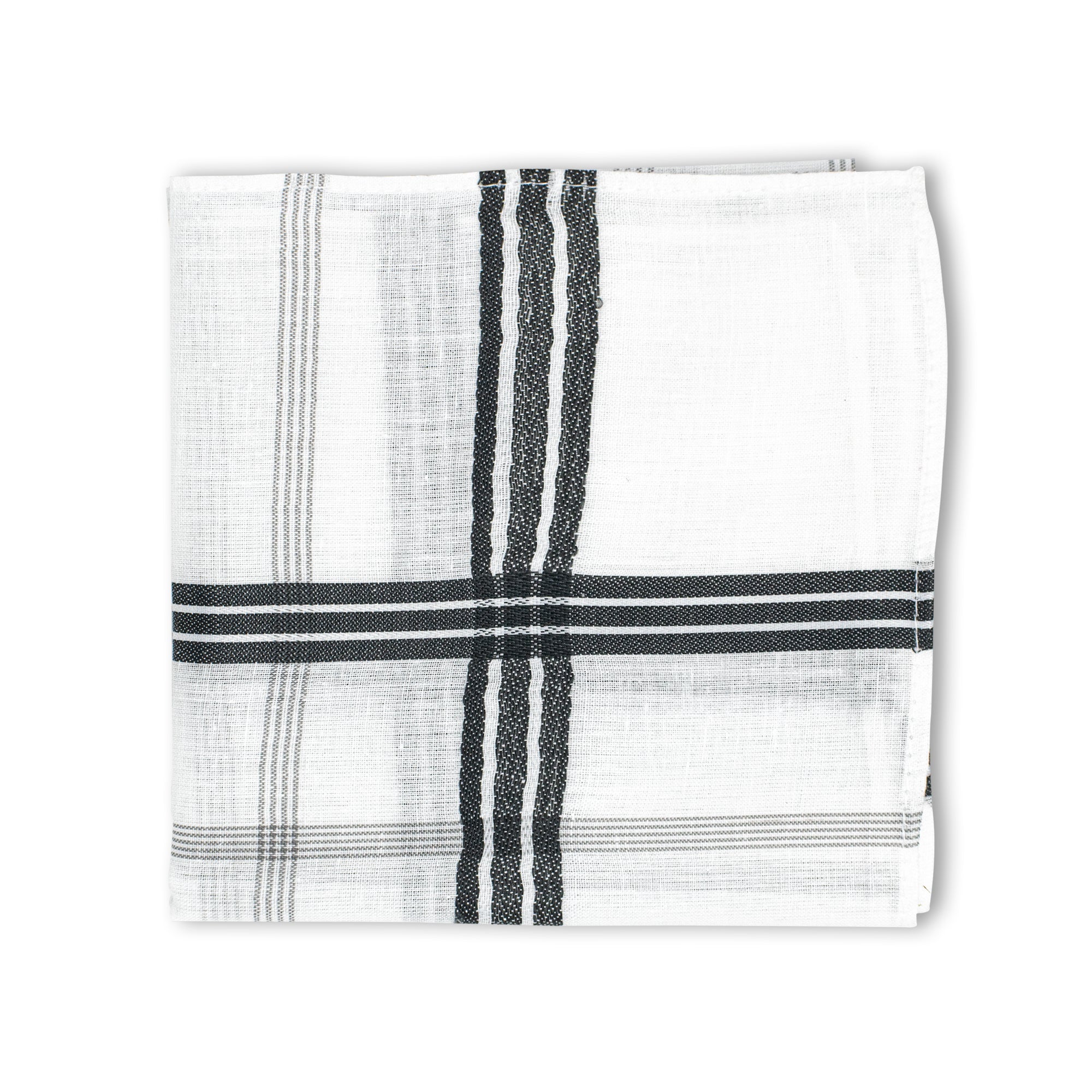 This kerchief is pure white with colored stripes accent and the dimensions of the men’s handkerchief are 45x45 cm (±1 cm).