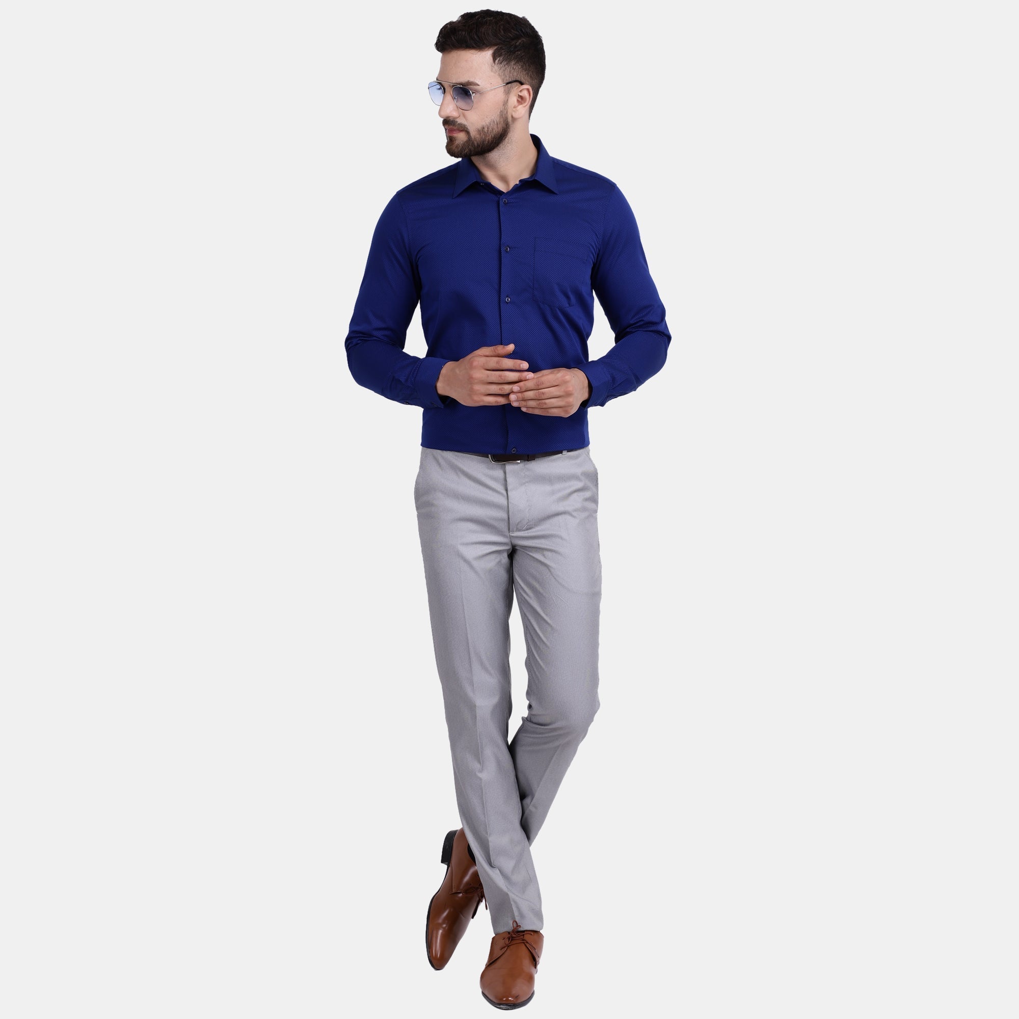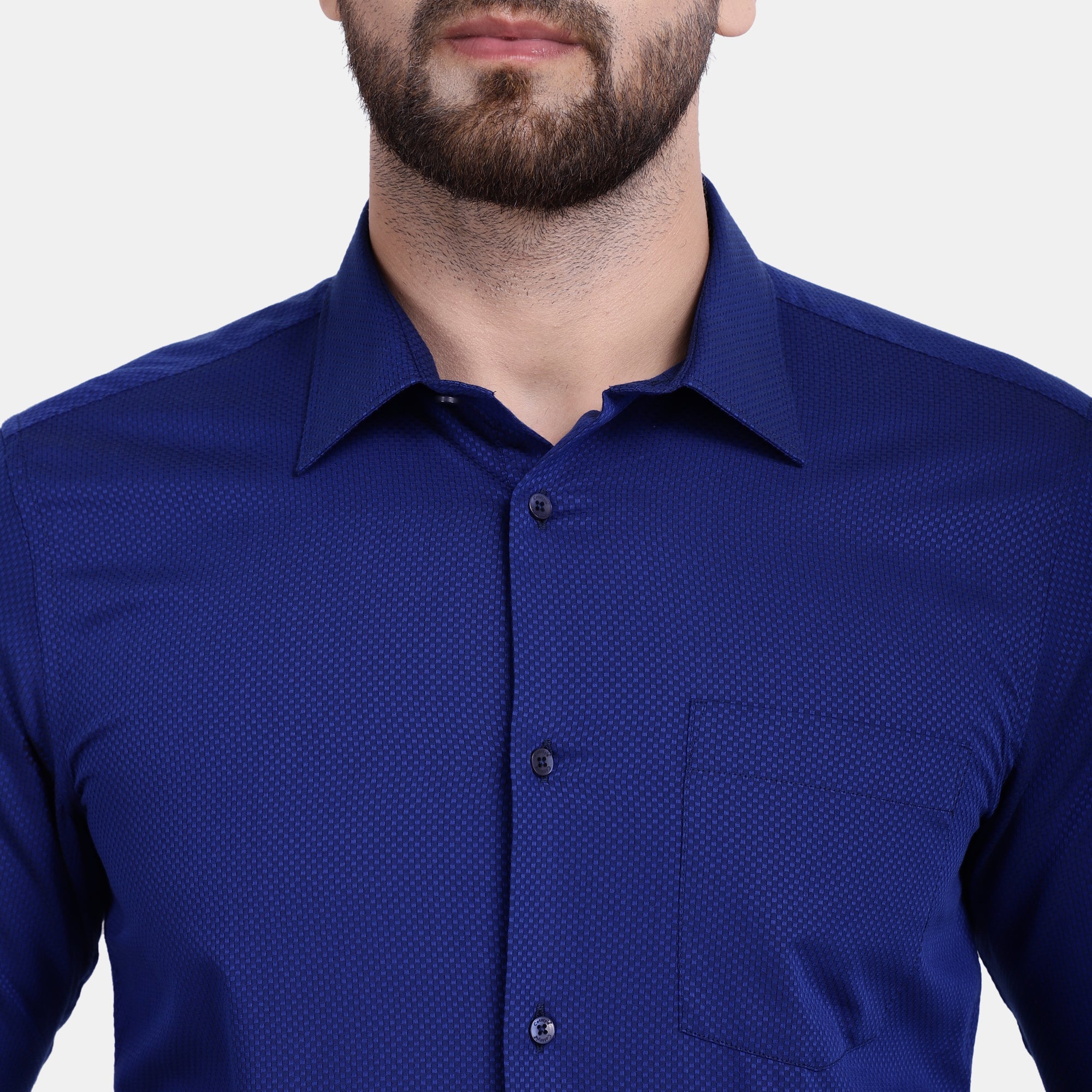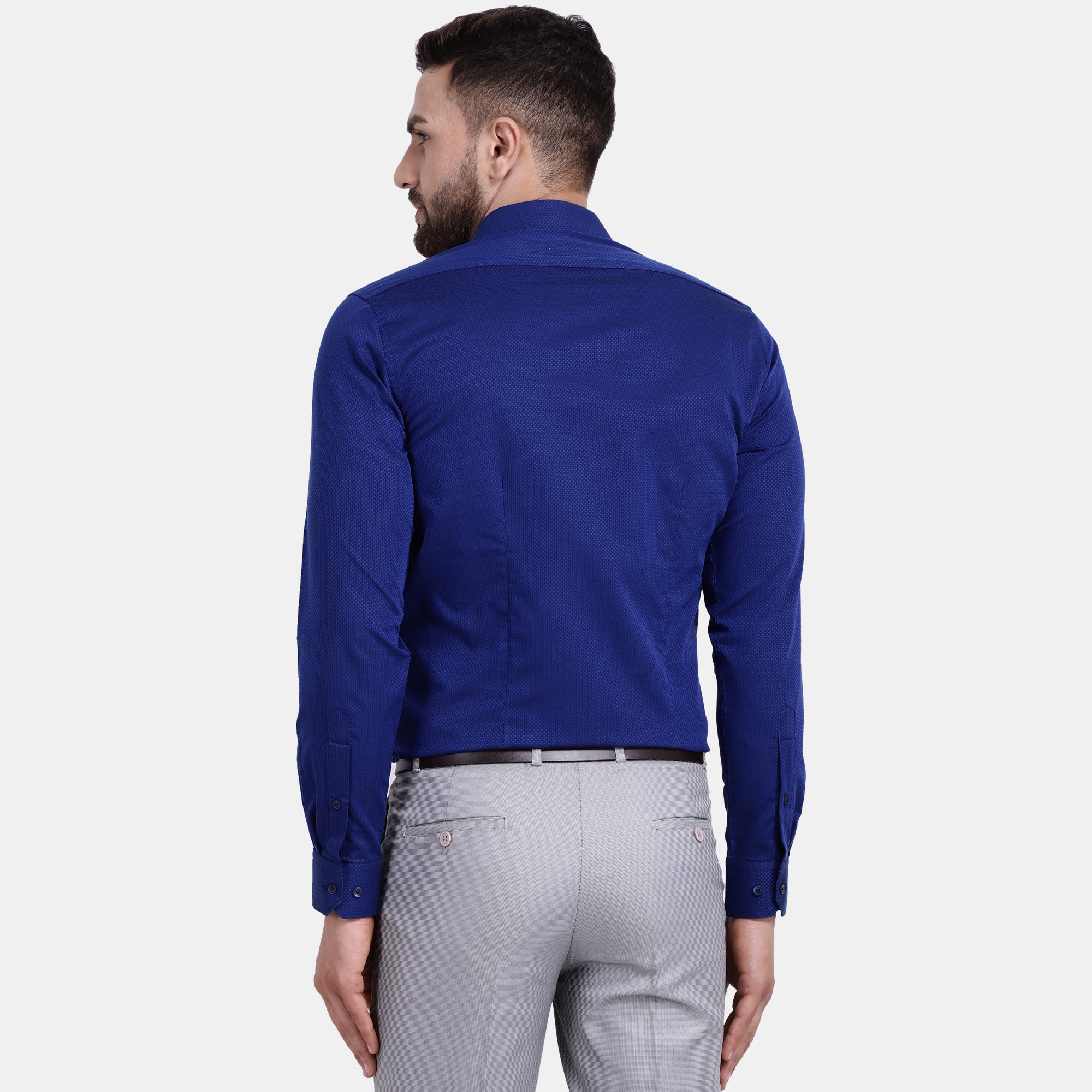 Add a touch of royalty to your evening wear in this stylish bitone check PIMA Mercerised dress shirt. With hipster collar and single convertible cuff, this slim fit shirt is sure to bring out the best in you. The satin weave on this shirt’s fabric results in higher lustre and makes it soft to touch. The embroidery at yoke part keeps your neck itch-free and comfortable for long wear. This shirt is an essential in any luxury closet.