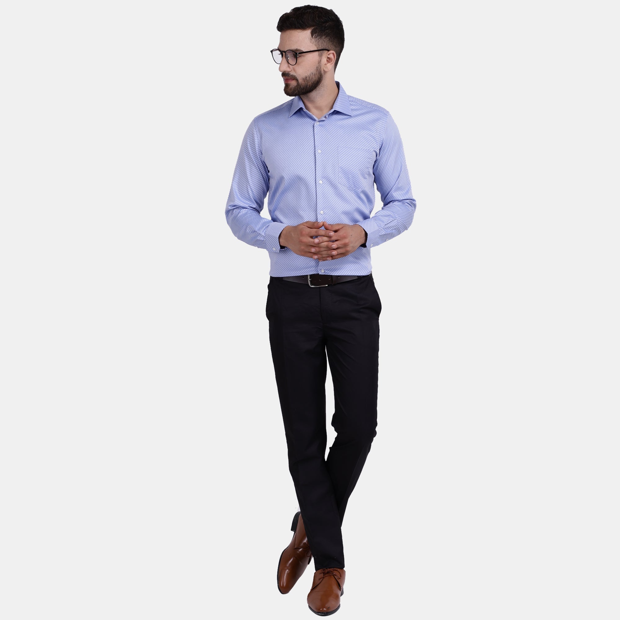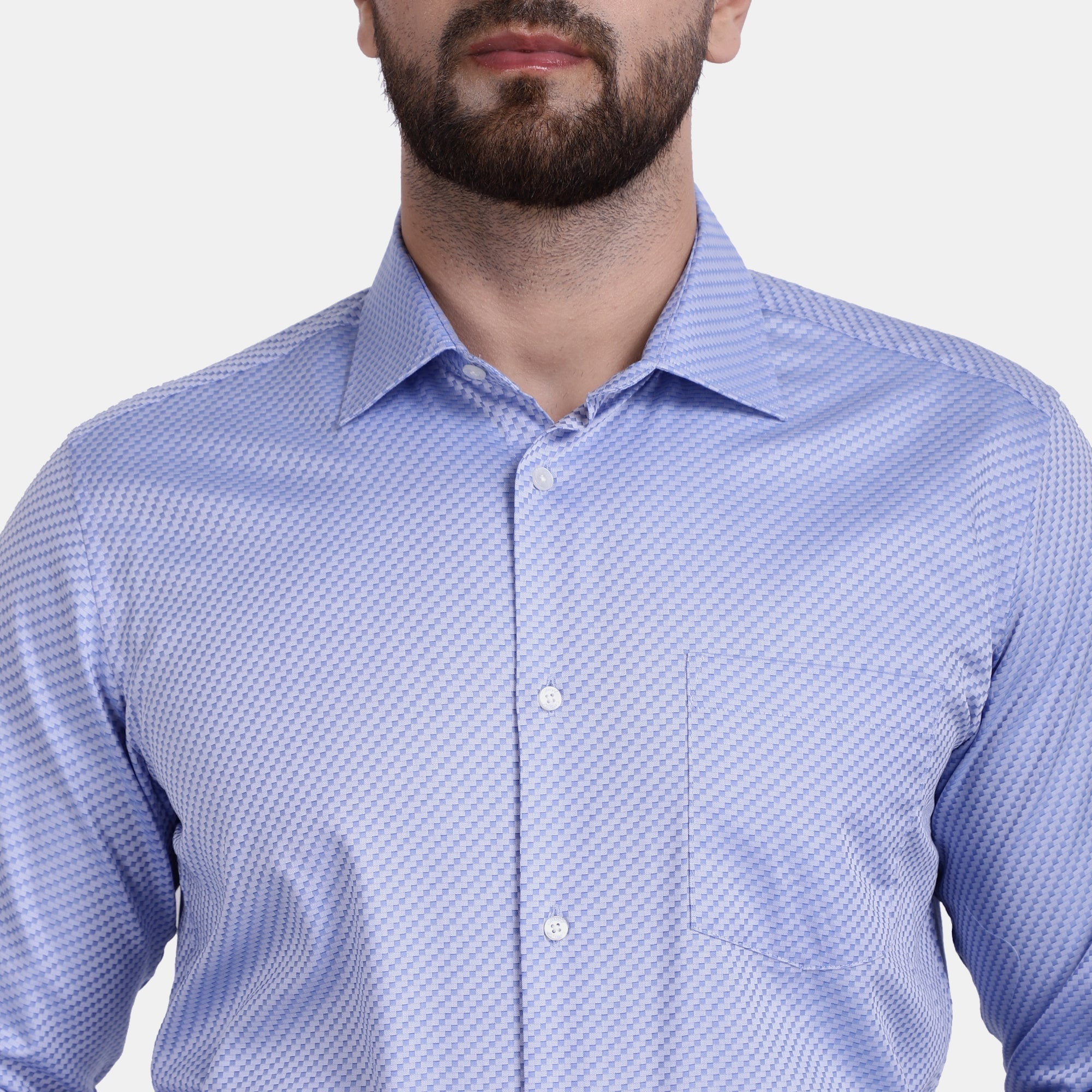 Achieve a classic look effortlessly with this PIMA mercerised jacquard weave dress shirt. The fabric takes luxury to another level with its satin weave that imparts high lustre and soft hand touch. With hipster collar and single convertible cuff, this shirt is a must-have in any wardrobe. The embroidery at yoke part provides additional comfort and itch-free neck. Make your style statement with this classy shirt.