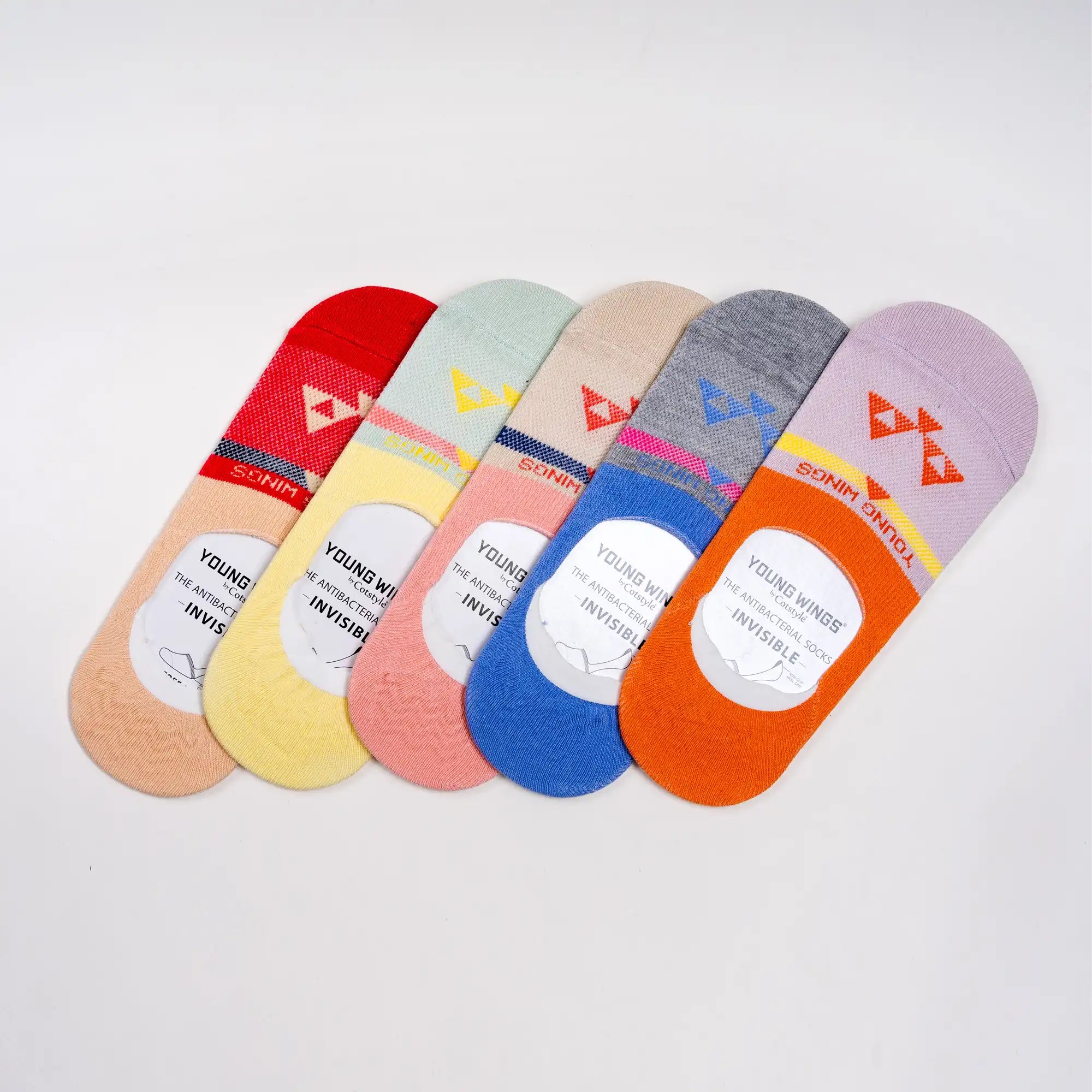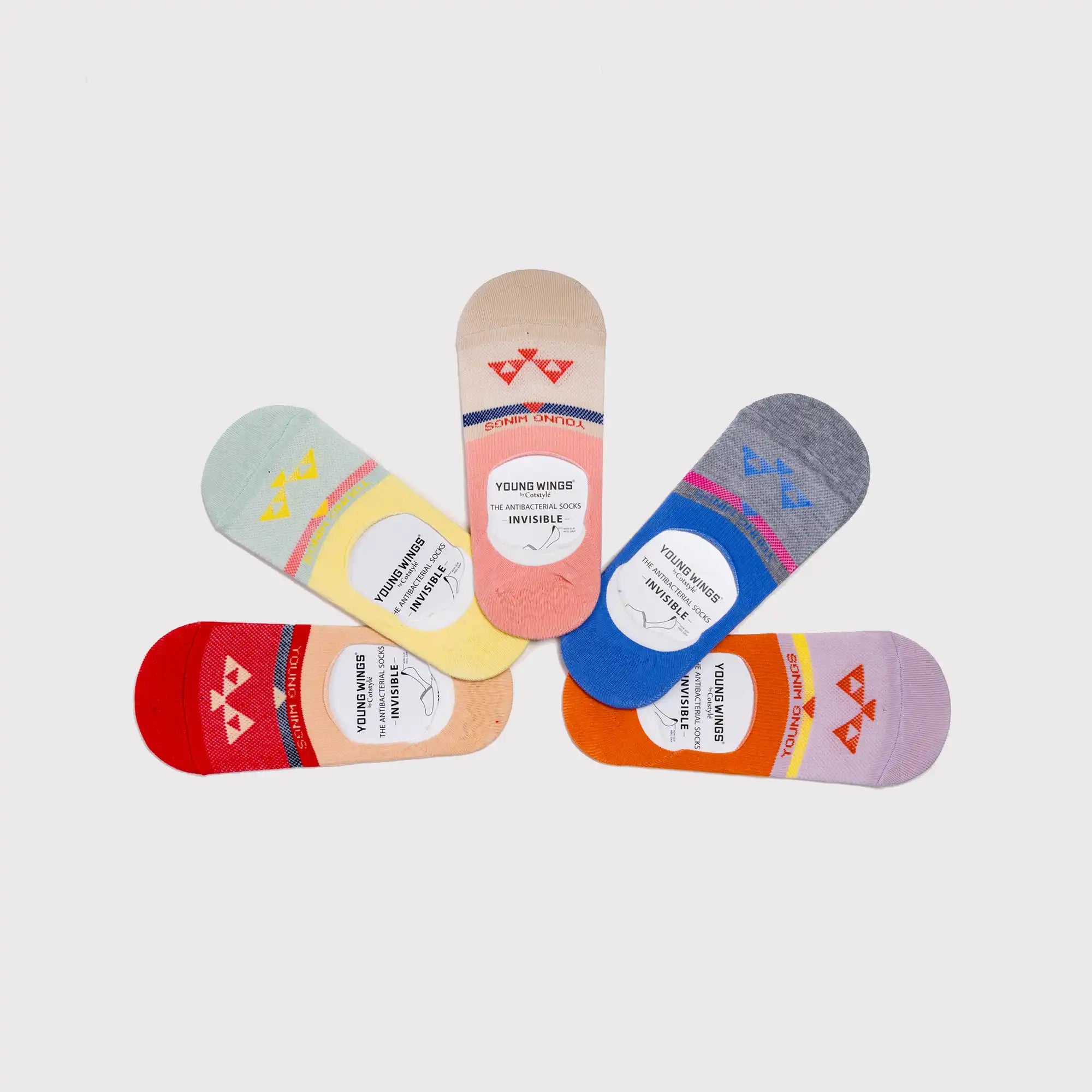 Young Wings Women's Multi Colour Cotton Fabric Design No-Show Socks - Pack of 5, Style no. 9003-W1
