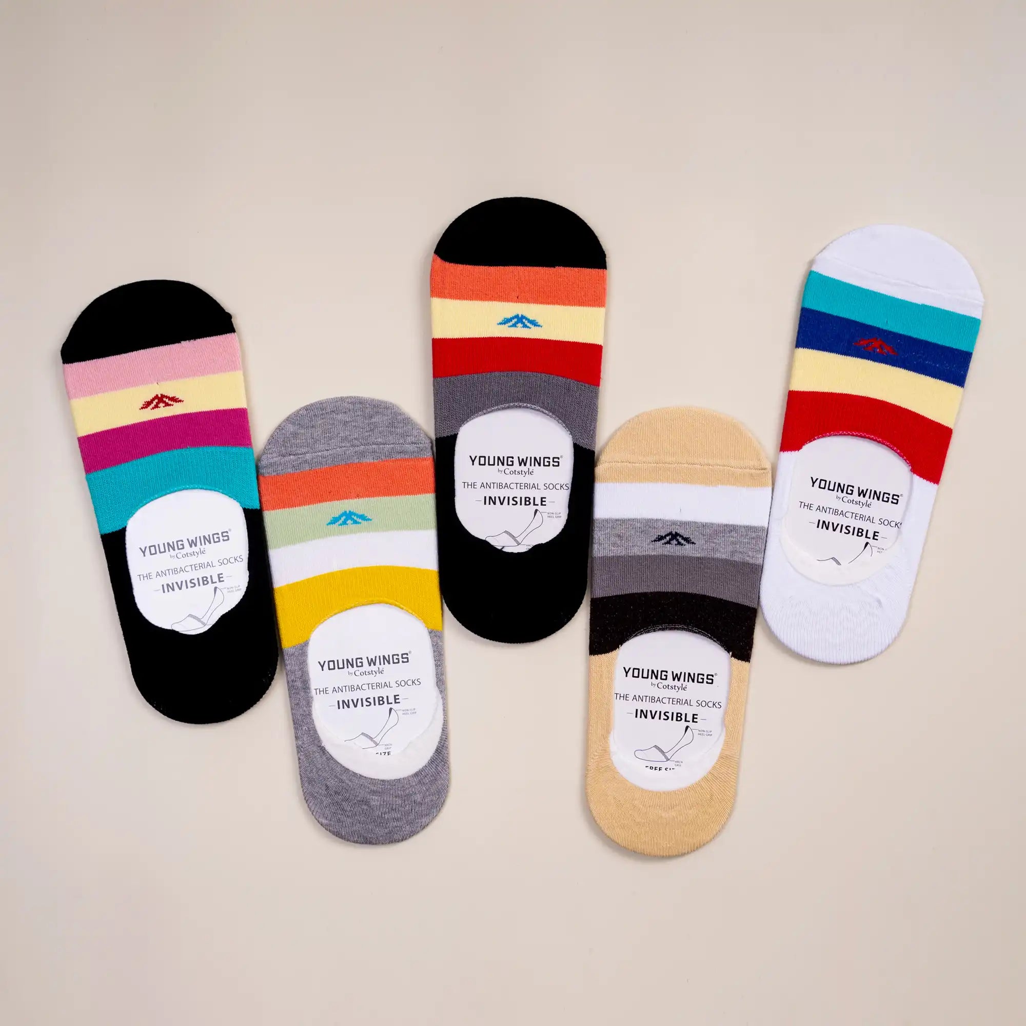 Young Wings Women's Multi Colour Cotton Fabric Design No-Show Socks - Pack of 5, Style no. 9006-W1